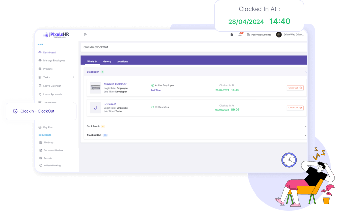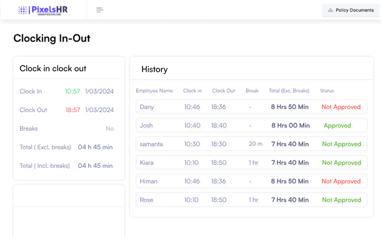 Clock In, Clock Out Simplified Precision Time Tracking with PixelsHR